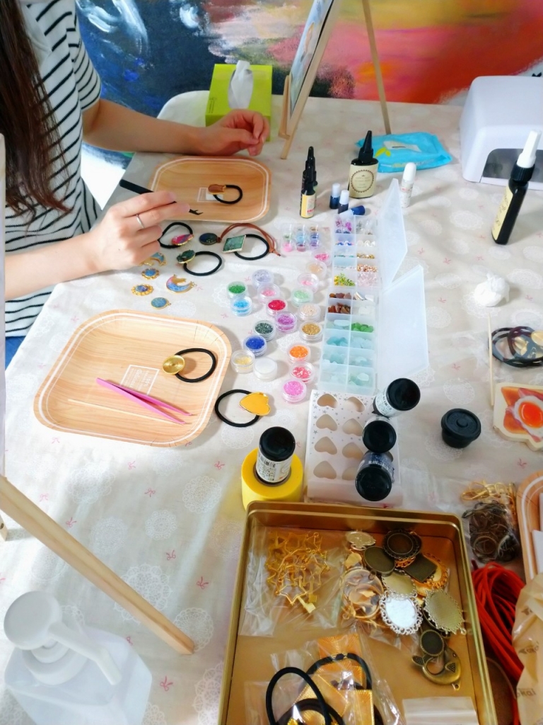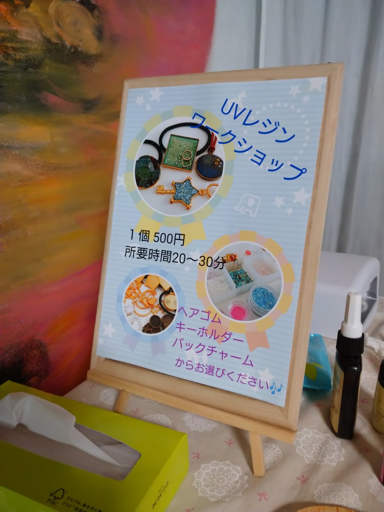 今回はハンドメイド小物の「Cornoさん」が来てUVレジンを使ったワークショップをしてくれました。