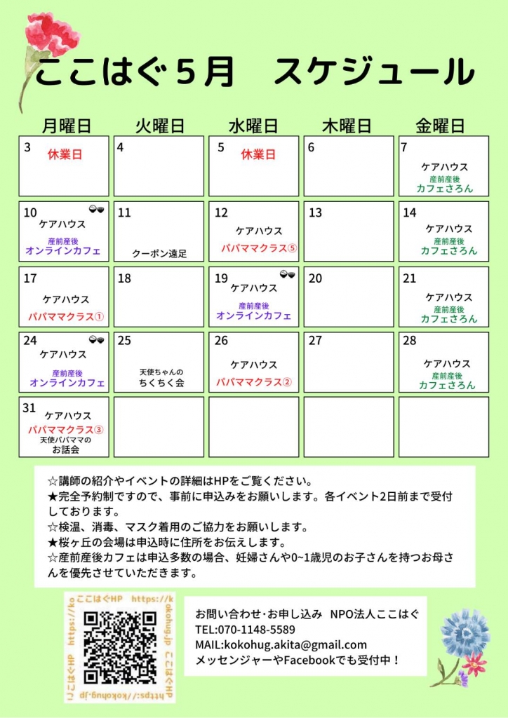 5月ここはぐイベントカレンダー 2021 4/28 2021.04.28 2021.04.28 お知らせ ここはぐ4月イベント ここはぐ8月イベント この記事を書いた人 ここはぐ 関連記事 12/18 マインドフルネス講座 《我が子の特性に気づき育てて伸ばし強みを生かす》 2020.12.01 3月スケジュールです 2024.02.28 令和6年度 わんぱくキッズのおでかけプラン 2024.04.16 11/27 研修会のお知らせ 2021.10.11 パパ・ママクラスやっています 2021.07.29 ここはぐ8月イベント 2021.07.19 ここはぐ特別イベントのお知らせです 2022.02.28 1/15 オープンday 2021.01.14 コメント コメントする コメントをキャンセルコメント ※ 名前 ※ メール ※ サイト 次回のコメントで使用するためブラウザーに自分の名前、メールアドレス、サイトを保存する。