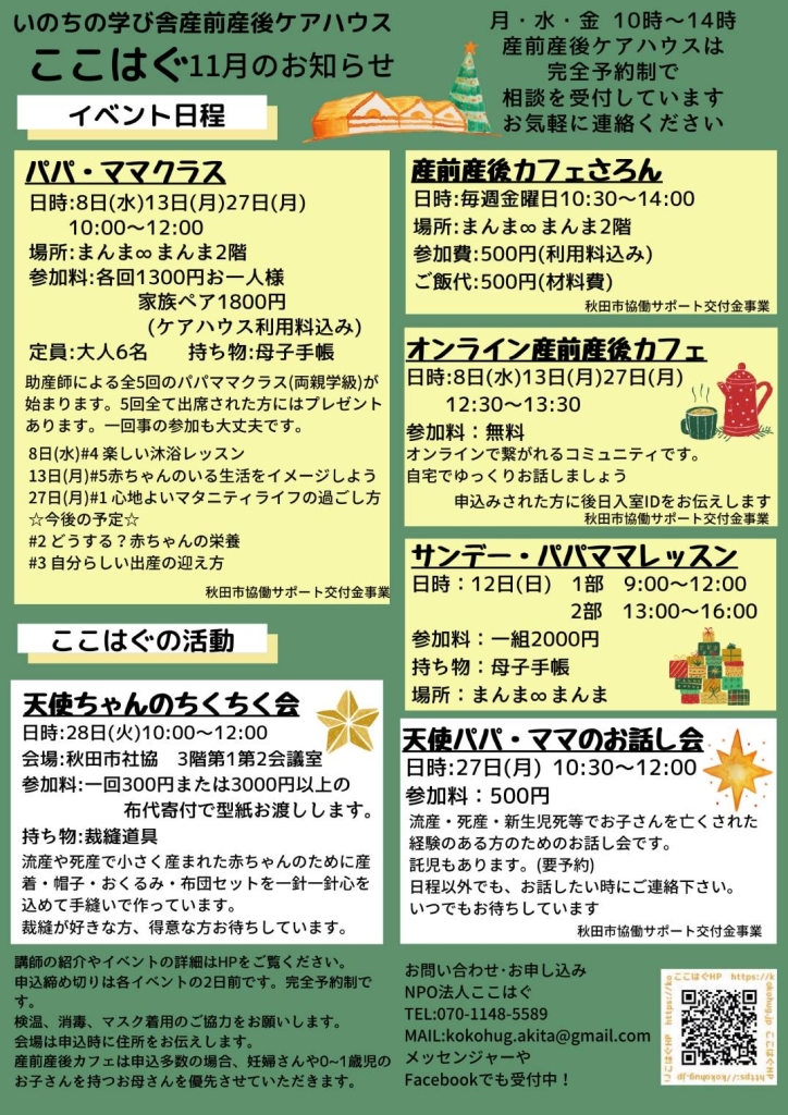 ここはぐ12月 イベント 2021 12/02 2021.12.02 2021.12.02 ここはぐ12月のイベントです。お申込みお待ちしています。 お知らせ ここはぐ11月 イベント 1月のスケジュールです この記事を書いた人 ここはぐ 関連記事 2/9 ここはぐマタニティクラス 2021.01.14 6月のスケジュール 2024.05.22 1/15 オープンday 2021.01.14 クラウドファンディングが無事目標金額を達成しました! 2019.12.01 11/26 ここはぐオープンday 2020.11.03 12/18 マインドフルネス講座 《我が子の特性に気づき育てて伸ばし強みを生かす》 2020.12.01 ここはぐ8月イベント 2021.07.19 「おくりばこ」 オンラインショップ開設 2020.03.01 コメント コメントする コメントをキャンセルコメント ※ 名前 ※ メール ※ サイト 次回のコメントで使用するためブラウザーに自分の名前、メールアドレス、サイトを保存する。