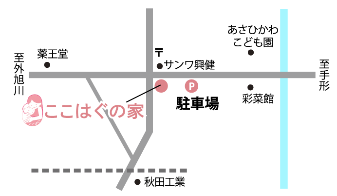 ここはぐの家:〒010-0815 秋田県秋田市泉馬場6-7